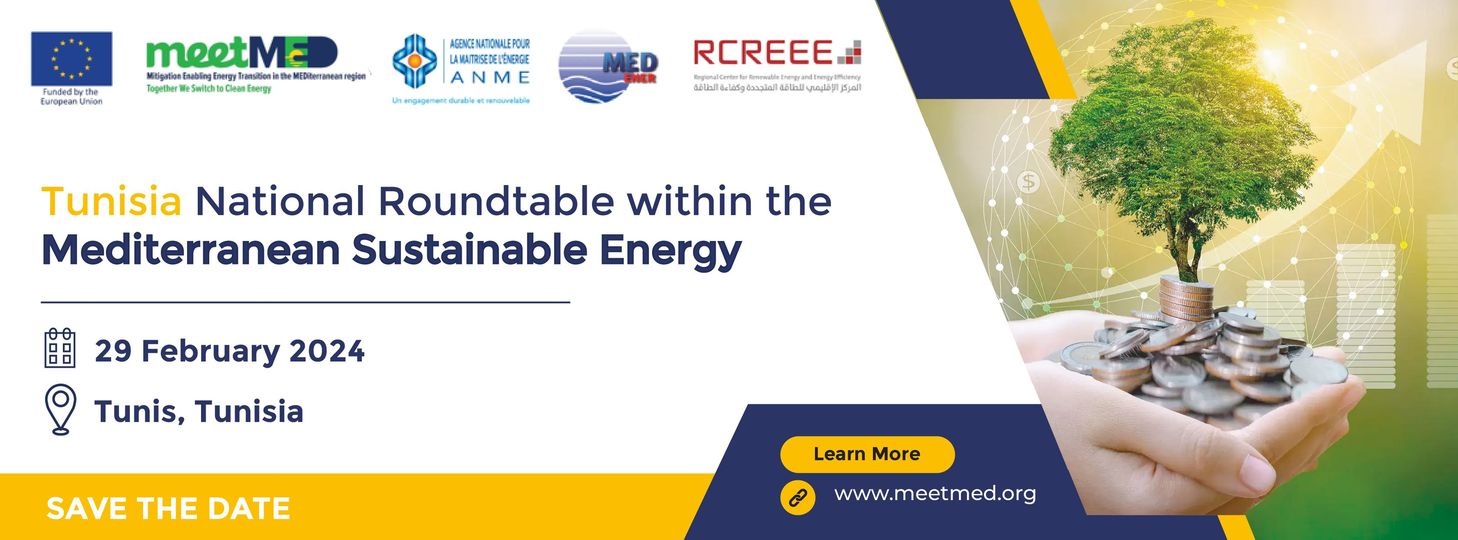 meetMed الممول من الاتحاد الأوروبي والذي تنفّذه الجمعية المتوسطية للوكالات الوطنية للتحكم في الطاقة MEDENER والمركز الإقليمي للطاقات المتجددة والنجاعة الطاقية RCREEE، نظمت الوكالة الوطنية للتحكم في الطاقة اليوم الخميس 29 فيفري 2024 بتونس العاصمة، ملتقى تحت عنوان : "تمويل مشاريع النجاعة الطاقية في قطاعات البناء والأجهزة الكهربائية المنزلية". ويتنزل هذا اللقاء ضمن سلسلة من الاجتماعات الوطنية المتعلقة بالنفاذ إلى التمويل لفائدة دول حوض جنوب المتوسط » « MED SEI Forums.