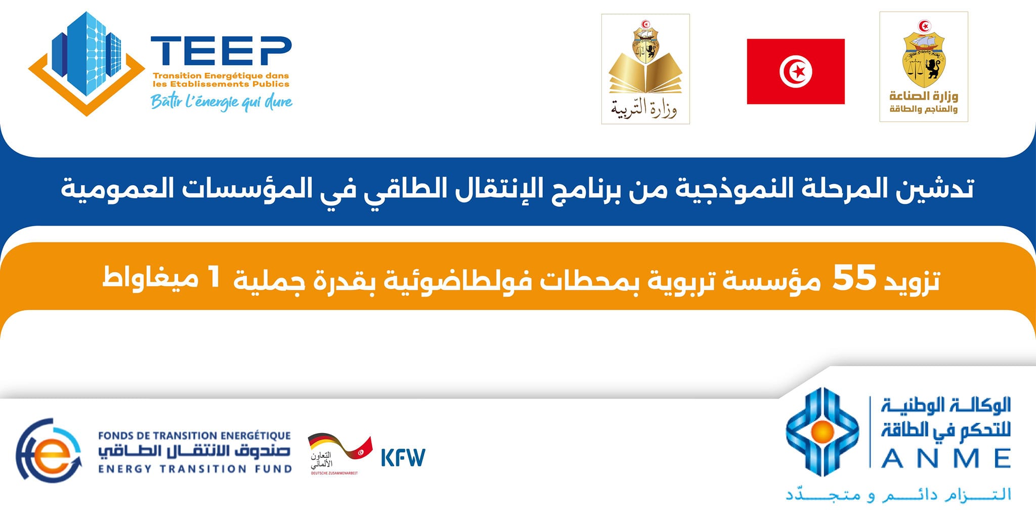 ✳️وقد تم خلال شهر فيفري المنقضي الإنتهاء من تركيز 55 وحدة شمسية في المؤسسات التربوية بولايات تونس الكبرى وباجة وتوزر ونابل، بقدرة انتاج تغطي حاجيات هذه المعاهد من الطاقة الكهربائية.