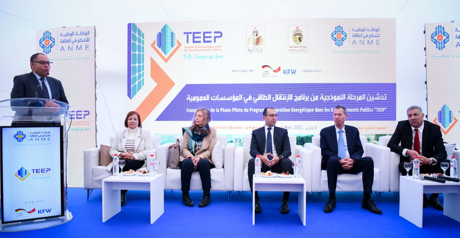 ✳️أشرف كاتب الدولة المكلف بالإنتقال الطاقي السيّد وائل شوشان الجمعة 1 مارس 2024 على موكب تدشين المرحلة النموذجية من برنامج الانتقال الطاقي في المؤسسات العمومية "TEEP" بمعهد حنبعل بمعتمدية طبربة من ولاية منوبة وذلك بحضور والي الجهة السيد محمد شيخ روحو و المدير العام للوكالة الوطنية للتحكم في الطاقة السيد فتحي الحنشي وكاتب عام وزارة التربية السيد الهادي حمداوي إلى جانب مديرة مكتب البنك الألماني للتنمية في تونس "KFW" السيدة "بياته ريتشر"